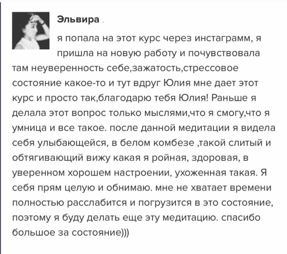Если вам не понравится результат, то, после индивидуальной беседы, я гарантирую вам возврат 100% суммы, которую вы оплатили, в течение 7 дней. Я уверена, что вы будете в восторге, поэтому легко могу дать такую гарантию!